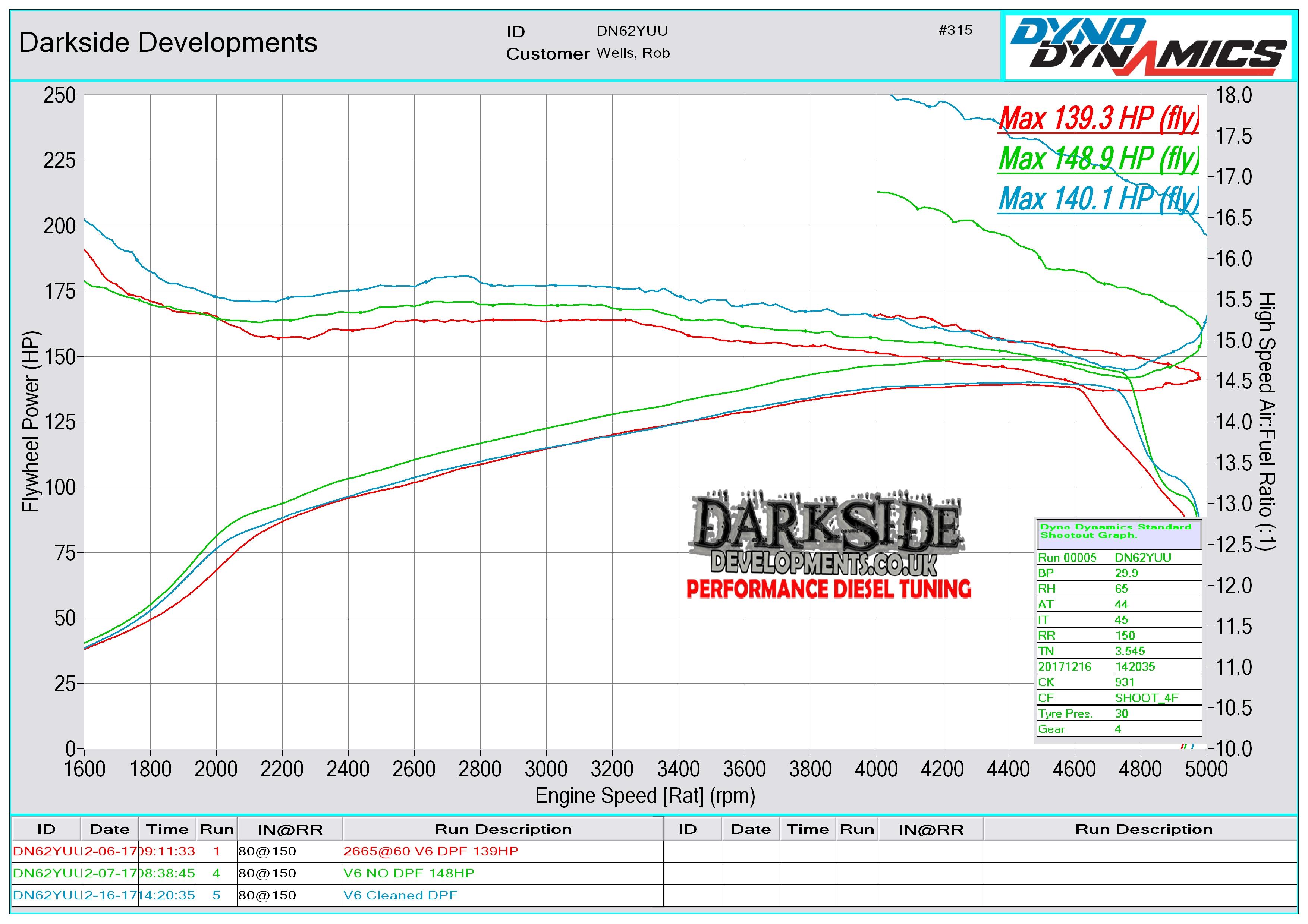 Red - DPF Present   |   Green - DPF Removed   |   Blue - DPF Cleaned