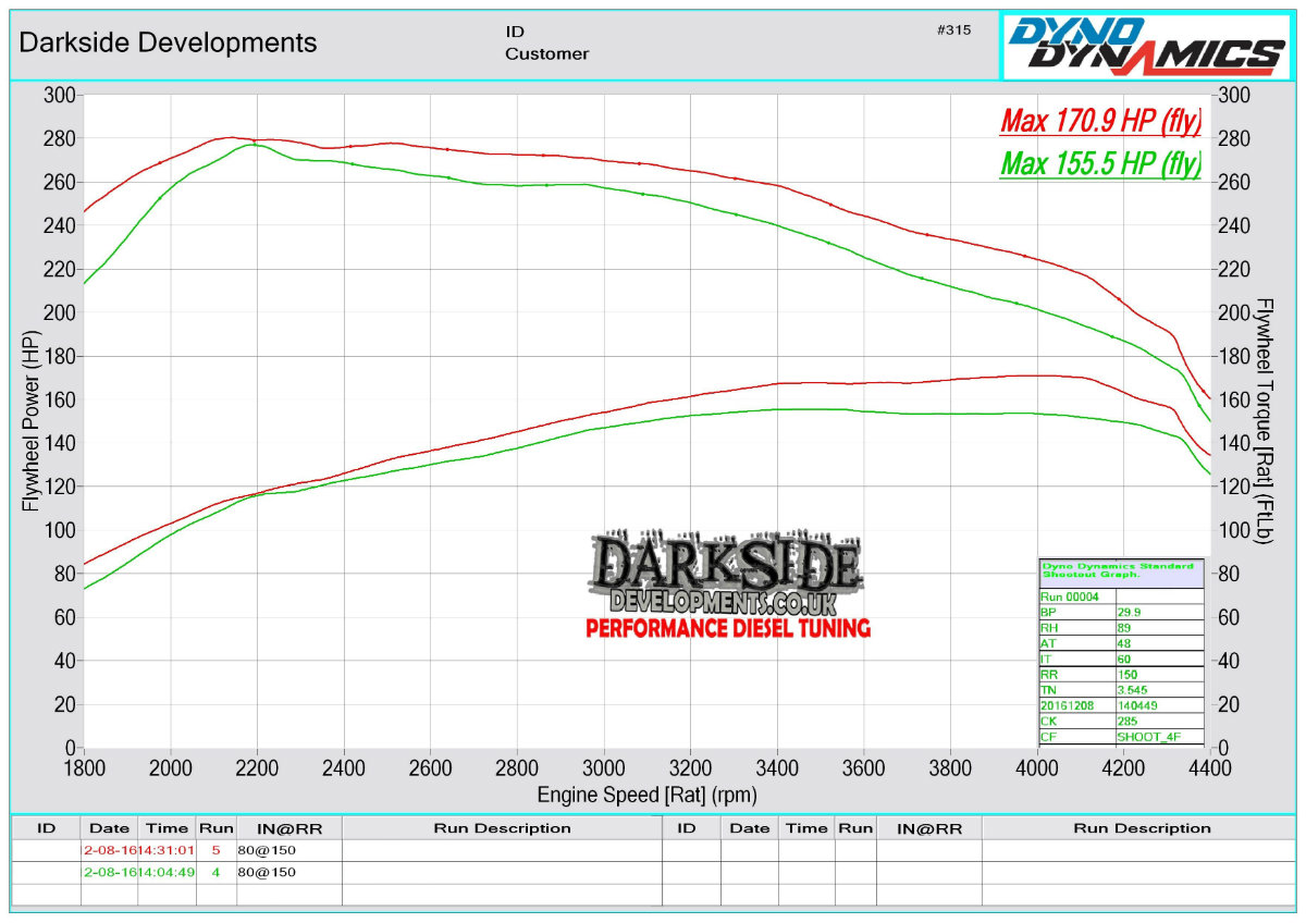 Below is an example of a standard PPD170 engine, before and after timing adjustment. On these engines a gain of 10bhp or more from correcting the timing is typical.