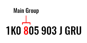 The first digit of the second group of three characters identifies the part as belonging to one of ten Main Groups. Once you know these, you’ll see at a glance the type of component or system the part belongs to.