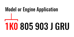 The first three characters normally indicate the vehicle type, engine, or transmission that the part was designed for. It can consist of letters and/or numbers. In this case, 1K0 indicates a Golf from ~2004 - 2008 (Mk5 chassis). All parts made for a specific model, body style variation, engine or transmission have the same first three-character part number code. Since many parts can be used on more than one model, the first three digits do not restrict the part to that model alone, normally just what is was initially fitted to.
