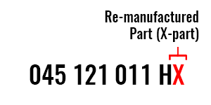 The part numbers of re-manufactured parts are similar to those for most other parts. They generally have the same part number as the brand new item, however, the letter X always occurs as the last digit in the part number. Here is an example:
