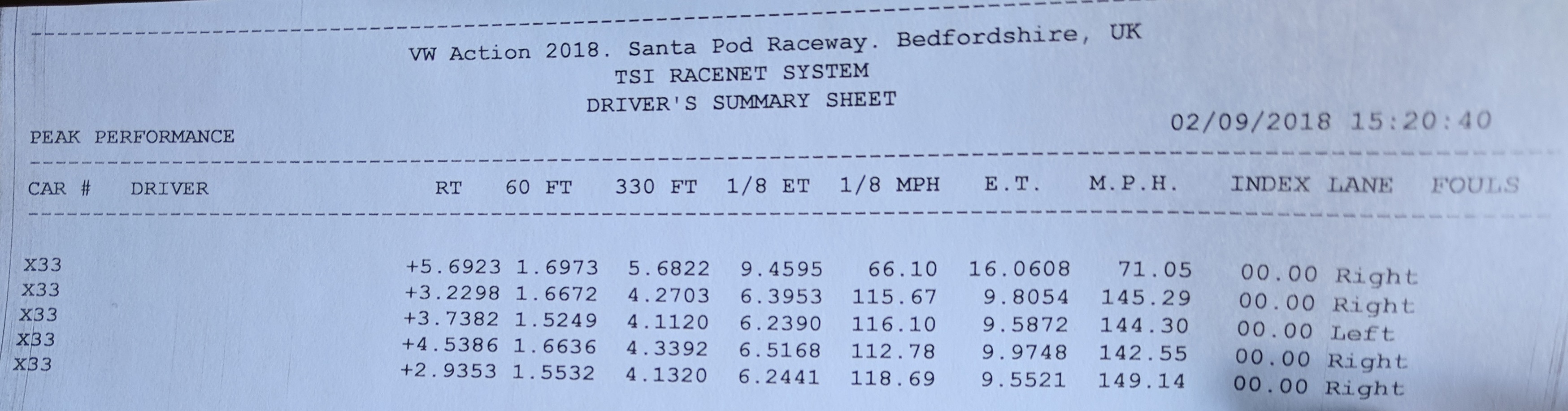 3rd attempt was a 9.58 @ 144.3mph, so a new best time. The launch was great, 1.52 60Ft was also the best we had ever done.