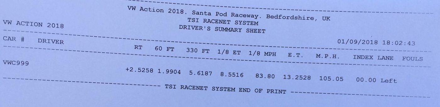 VW Action has always been a great show for us, both from a spectator perspective and for results. It was where we did our best time in the Arosa last year, a 9.7224s @ 146.74mph and Jerome also set his quickest time of 11.183 @ 121.88mph in his Ibiza, so we had high hopes for both cars performing well this year.